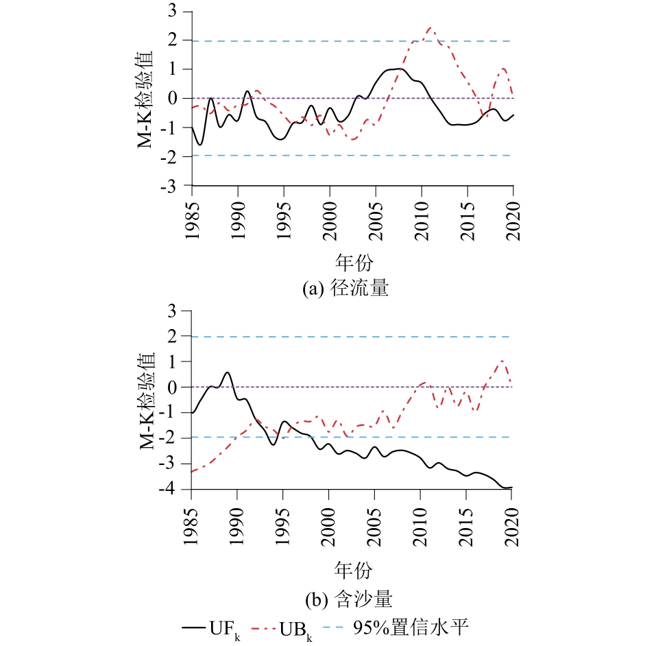 为了分析淮河干流水沙变化特征,选定吴家渡水文站为代表性水文站,采用累积距平、M-K分析法、R/S分析法和Morlet小波分析法等方法,对吴家渡站1950—2015年水沙实测资料进行分析,研究淮河干流近66 a来水沙序列变化趋势、突变点及周期特征,并深入分析水沙条件突变及变化趋势的真实原因。结果显示:整体上淮河干流年径流量未呈现明显的增加或减小的趋势,但淮河干流来沙量则表现出明显的减少趋势,2000年后来沙量趋于稳定;淮河干流来沙变化具有较明显的阶段性特征,整体上呈现出多、少2个阶段的变化过程,发生突变的年份在1980—1984年之间,未来一段时间来沙量整体呈现减小的趋势;水库拦沙、农业种植改变下垫面、人工采砂及航道整治与河道疏浚的作用是导致淮河干流含沙量持续减小的原因;径流量第1—第3主周期分别为18,8,2 a,并且在未来短时间内将继续保持枯水期;输沙量整体上保持减少的趋势,第1—第4主周期分别为7,17,25,2 a,含沙量的第1和第2主周期分别为23,6 a,并且在未来短时间内将继续保持少沙期。研究成果可为淮河流域水资源管理与河道治理开发利用提供理论依据。