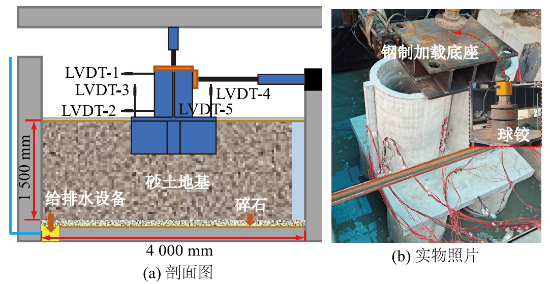 箱筒型基础防波堤是港口区域软土地基中较优的防波堤结构形式,为了探究其承载特性,通过大比尺的模型试验和数值仿真,研究了箱筒型基础防波堤的横向承载特性,分析了其受荷响应、失效模式、转动特性及与地基的相互作用。研究发现:横向荷载作用下,箱筒型基础整体失效模式为一般剪切破坏;准弹性阶段防波堤向荷载方向转动,转角与横向位移线性相关;塑性阶段临界位移约为基础长度的1.0%,变位模式由滑移为主向转动为主转变;失效阶段临界位移约为基础长度的3.0%,变位以转动为主;循环位移荷载作用下,正旋转发生循环硬化,负旋转发生循环退化。研究成果有助于完善箱筒型基础结构的计算理论。