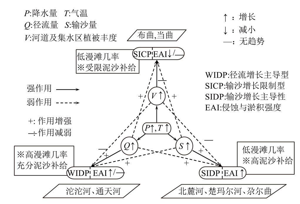 [Objective] This study focuses on morphodynamic evolution of braided rivers in the Source Region of the Yangtze River (SRYR), a representative high-altitude fluvial system on the Qinghai-Xizang Plateau. It aims to 1) systematically review recent advances in remote sensing monitoring, quantitative morphological characterization, and numerical simulation; 2) establish a unified morphological representation framework applicable across spatial scales; 3) analyze the response mechanisms of braided rivers to variations in water and sediment under climate change; 4) identify key process mechanisms and influencing factors to support the sustainable management and ecological protection of braided river systems on the plateau. [Methods] This study integrated multiple research approaches, including the extraction of morphological parameters at various scales from remote sensing imagery, UAV-based photogrammetry, and field surveys. Numerical models such as Delft3D were used to simulate morphological evolution under typical flood scenarios. A three-tier morphological representation system comprising whole-reach, sub-reach, and bar-channel unit levels was constructed. Indicators such as braiding intensity, channel density, and bar-to-channel area ratio were analyzed across different scales. Through literature review and empirical comparison, the climatic, hydrological, and geomorphic factors affecting the evolution of braided rivers on the Qinghai-Xizang Plateau were identified, and their evolutionary patterns were summarized. [Results] In recent years, research on the morphodynamics of braided rivers in the SRYR has made systematic progress. The focus has shifted from qualitative descriptions to quantitative analyses, covering spatial scales from bar-channel units to entire river reaches and temporal scales from individual flood events to interannual evolution. In terms of morphological characterization, a multi-scale index system incorporating indicators such as braiding intensity, channel density, and bar-to-channel area ratio has been developed, achieving a preliminary quantitative description of structural complexity. Regarding process mechanisms, explanatory frameworks such as “oblique bar cutting”,“dual driving by flow and sediment”, and “tectonic-geomorphic coupling” have been proposed. Concerning climatic responses, three typical response modes have been identified: Sediment-Increase Dominated Pattern, Water-Increase Dominated Pattern, and Sediment-Increase Constrained Pattern, which exhibit significant spatial differentiation. Methodologically, the integration of remote sensing, UAV photogrammetry, and numerical modeling has significantly improved the precision of fluvial dynamic process recognition. Despite these advancements, three major challenges remain: (1) the multi-scale quantitative characterization system lacks uniformity and transferability. Morphological parameters across different scales remain poorly integrated, and the coupling mechanism between bar-channel structures and overall stability has not been clearly understood. Existing indices, mostly derived from lowland alluvial river systems, are difficult to directly apply in high-altitude cold environments. Quantitative descriptions of three-dimensional riverbed structures remain inadequate, and topological network characteristics and flow direction information have not been systematically incorporated.(2) There is insufficient understanding of spatiotemporal response mechanisms, making cross-scale modeling difficult. A unified framework is still lacking to explain morphological evolution driven by both short-term flood events and long-term climate change. The absence of high-temporal-resolution data across multiple spatial scales hampers the parameterization and validation of dynamic evolution models, resulting in difficulties in scale conversion.(3) The bidirectional effects of climate change remain unclear. In the short term, glacier melt and permafrost degradation increase water and sediment fluxes, promoting the enhancement of braided structures. However, future glacier retreat may reverse the water and sediment processes, causing channel incision and transition toward single-thread morphology. There is currently no systematic method to predict the overall impacts of such bidirectional changes on braided river morphology, and research on threshold identification and irreversible responses remains lacking. [Conclusions] Overall, future research on braided rivers urgently needs to shift from qualitative understanding to quantitative prediction. An integrated research framework that combines process analysis, threshold identification, and evolutionary trend modeling should be established. By combining multi-source data and multi-scale models, this framework can provide scientific support for infrastructure planning and ecological conservation on the Qinghai-Xizang Plateau.
