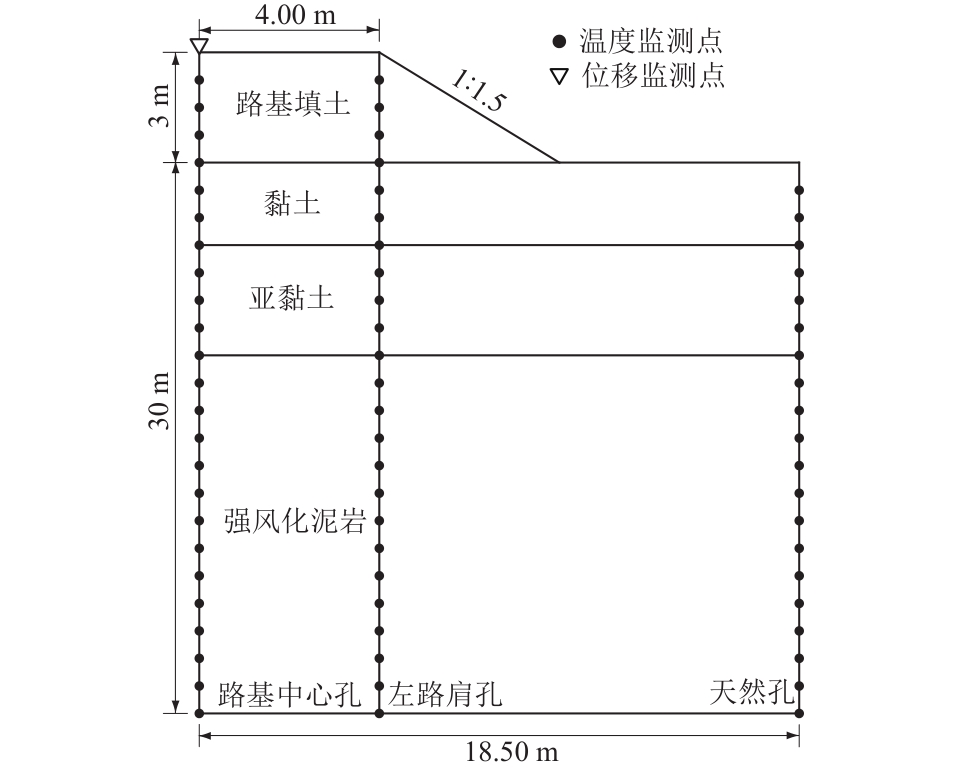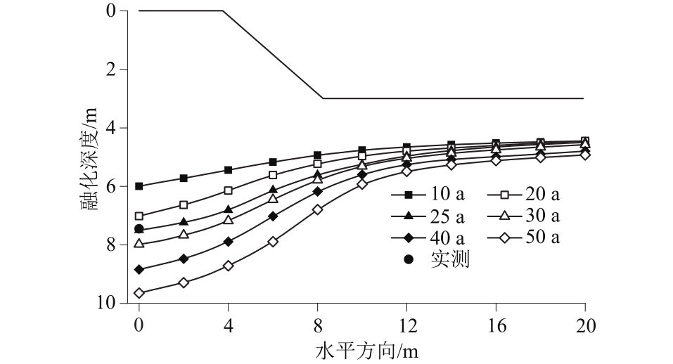 [Objective] Under the influence of climate change and engineering activities, the thermodynamic stability of subgrade engineering in permafrost regions faces severe challenges. To investigate the influence of seasonal temperature boundary conditions on the thaw consolidation characteristics of frozen soil subgrade, this study modifies the three-dimensional nonlinear large-deformation melting-thaw consolidation theory. [Methods] By introducing seasonal temperature boundary conditions and using the Mohr-Coulomb criterion to describe the plastic settlement deformation of thawed soil, a three-dimensional nonlinear plastic thaw consolidation theory incorporating seasonal temperature effects was developed. The theoretical model was numerically implemented using the FLAC3D simulation platform. Taking a typical high ice-content frozen soil subgrade section of the Qinghai-Tibet Highway as the research object, the thaw consolidation evolution patterns under seasonal temperature boundary conditions were systematically analyzed. The validity of the theoretical model was verified through comparison with field-measured data. [Results] The results showed that the settlement deformation of the frozen soil subgrade exhibited a periodic variation pattern with seasonal surface temperature changes, representing the most significant characteristic of thaw consolidation under seasonal temperature boundary conditions. Due to self-weight of subgrade soil, the distribution scope of vertical effective stress expanded with time. The calculation model considering plastic deformation demonstrated higher prediction accuracy. As plastic deformation accumulated continuously during thaw consolidation, its effect could not be neglected in long-term deformation predictions for high-ice-content frozen soil engineering. Through the study of the pore water pressure distribution during the consolidation process, it was found that the pore water in the shallow thawed area of the subgrade dissipated during initial operation. In the subsequent long-term operation, the continuous development of the thaw and settlement of frozen soil subgrade primarily resulted from the dissipation of the newly thawed pore water at the thaw front. [Conclusion] The improved theoretical model proposed in this study can more reasonably describe the thaw consolidation characteristics of high-ice-content frozen soil subgrades under seasonal temperature boundary conditions, providing a critical theoretical basis for the design and maintenance of subgrade engineering in frozen soil regions.